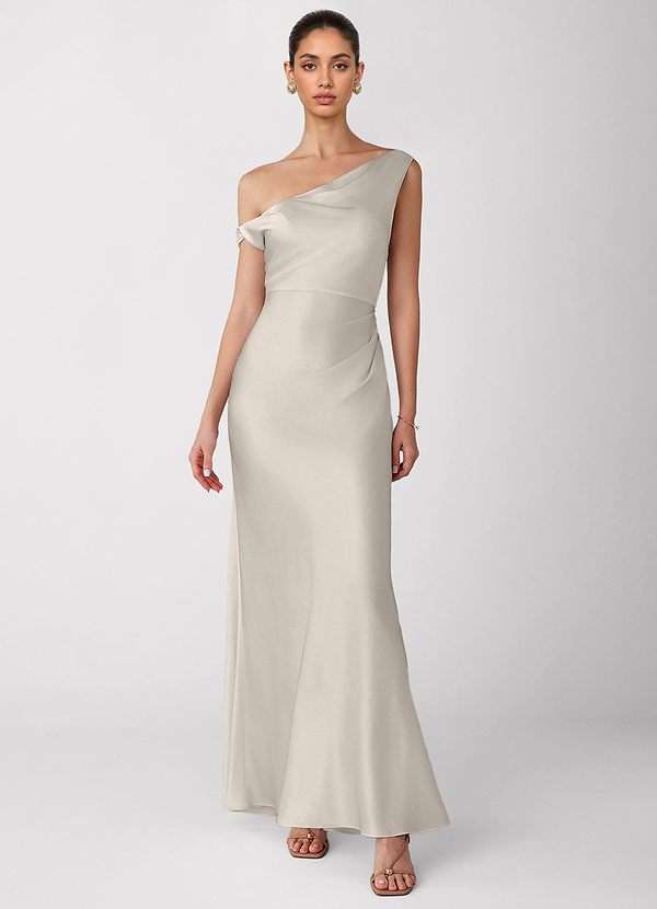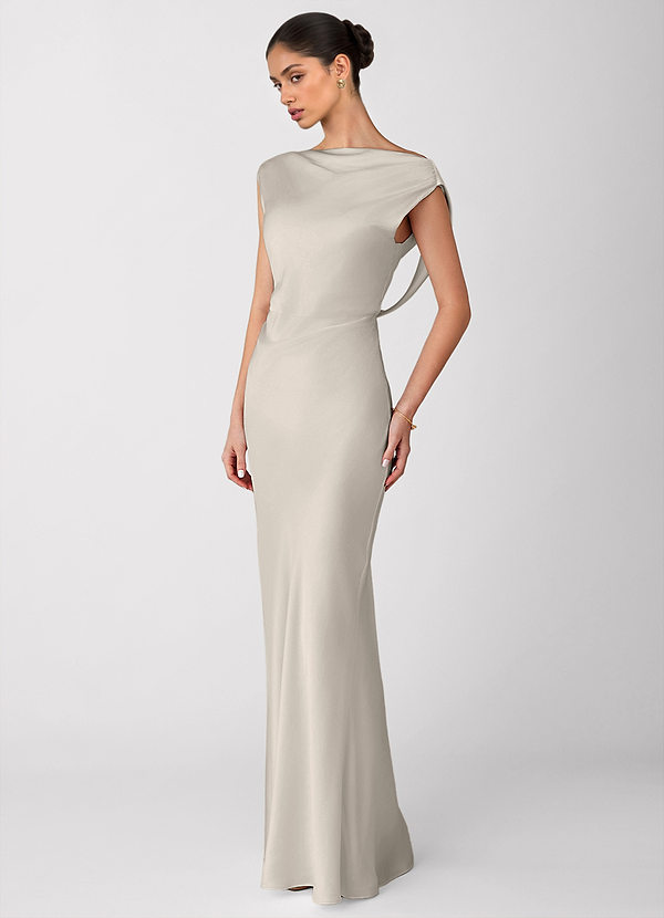 Liora White Alabaster Luminous Satin Maxi Dress