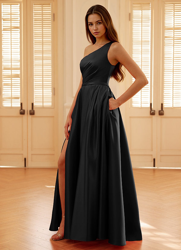 Millie Black A-line Prom Satin Dress