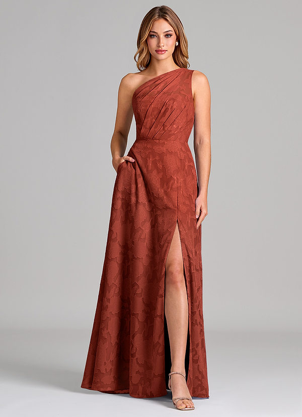 Terracotta A-Line One Shoulder Floral Burnout Dress
