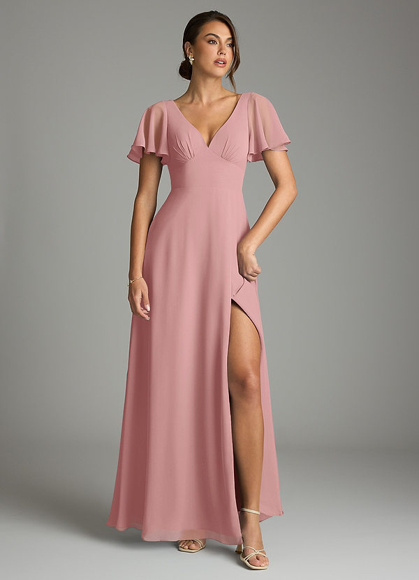 Dusty Rose A-Line Flounce Sleeve Chiffon Dress