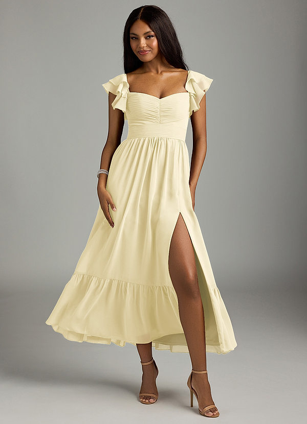 Lemon Sorbet A-Line Sweetheart Neckline Chiffon Dress
