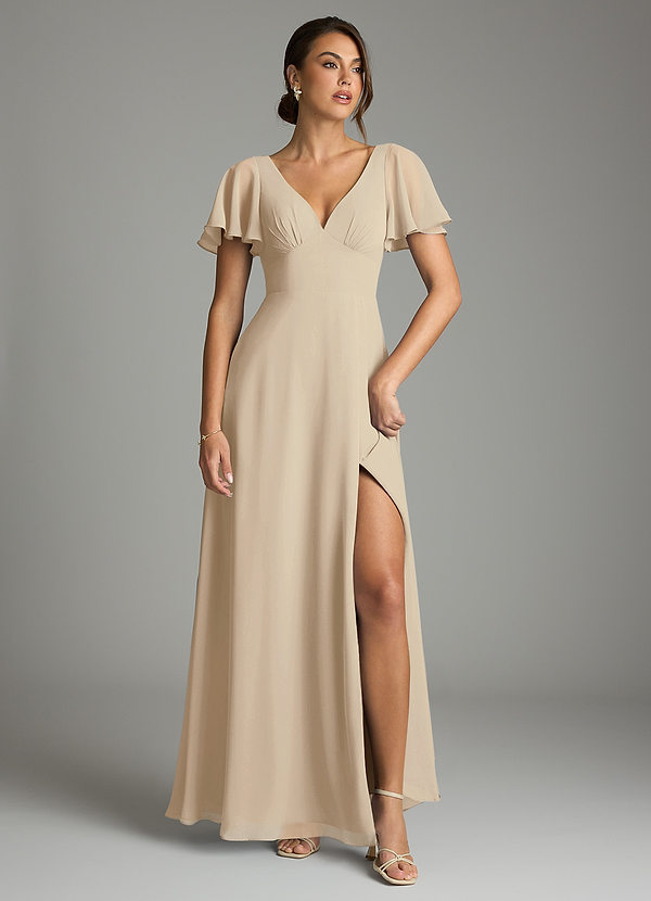 Champagne A-Line Flounce Sleeve Chiffon Dress