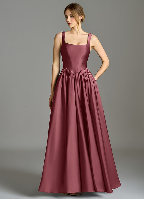 Desert Rose A-Line Pleated Stretch Satin Dress
