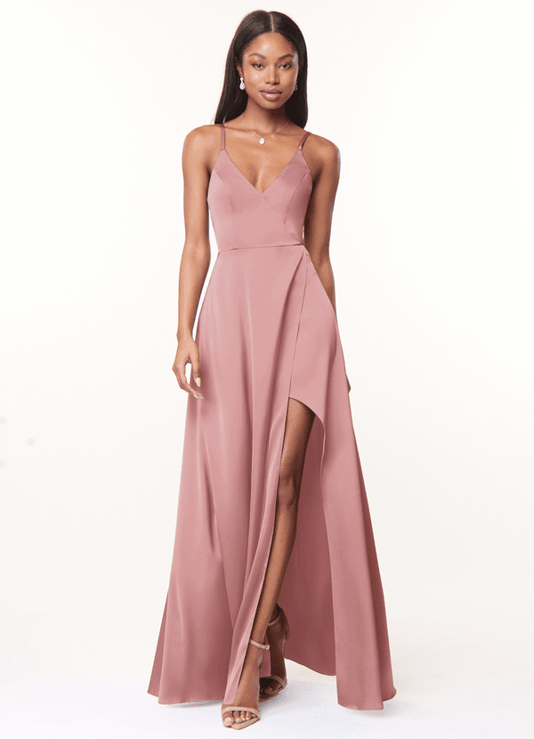 Dusty Rose A-Line V-Neck Stretch Satin Dress