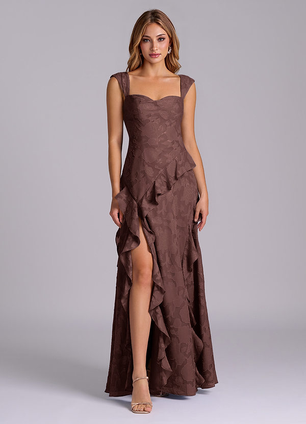 Espresso A-Line Sweetheart Neckline Floral Burnout Dress