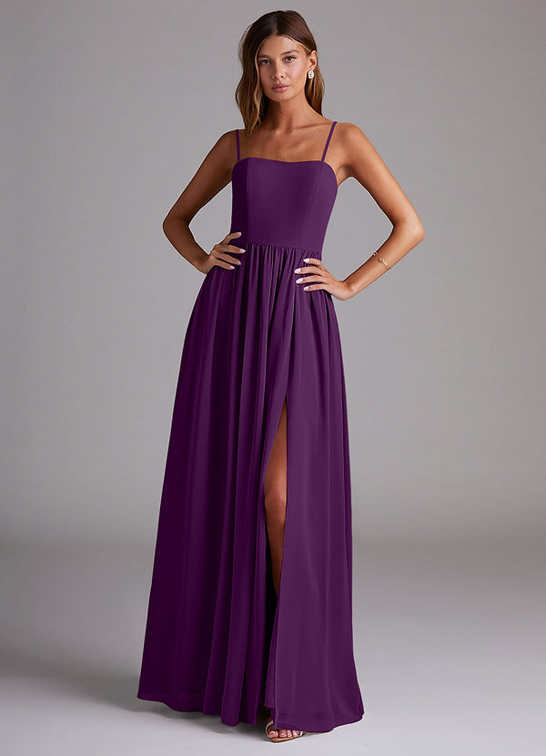 Grape A-Line Side Slit Chiffon Convertible Dress