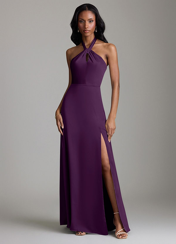 Grape A-Line Side Slit Stretch Satin Dress
