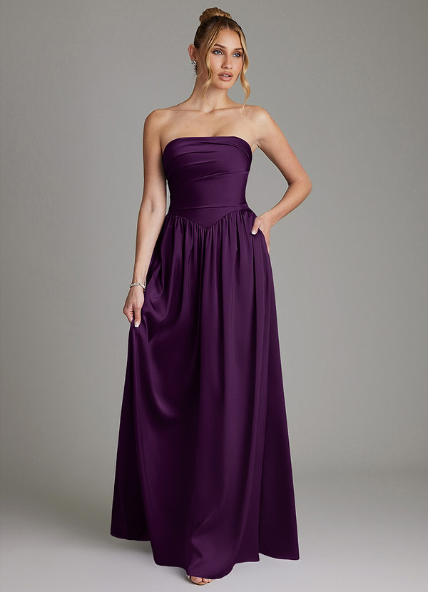 Grape A-Line Strapless Stretch Satin Dress