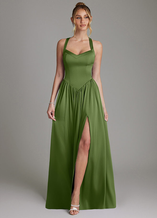 A-Line Pleated Stretch Satin Floor-Length Dress