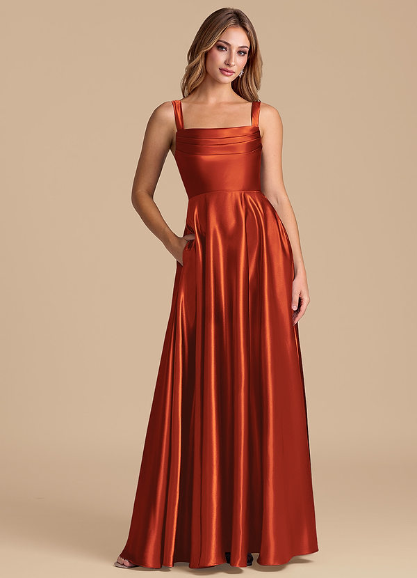 Paprika A-Line Pleated Metallic Satin Dress