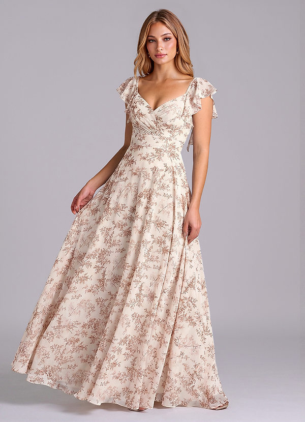 Pink Fern Floral A-Line Ruffled Chiffon Dress