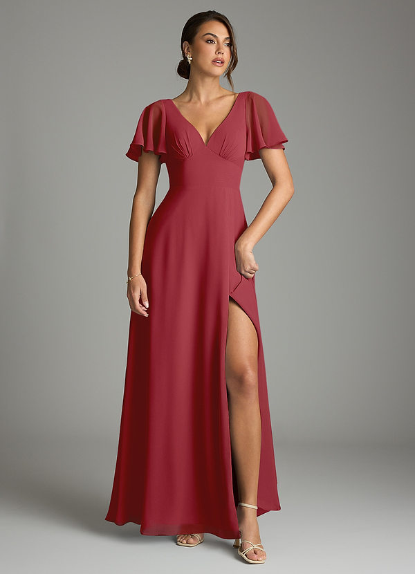 Pomegranate A-Line Ruffled Chiffon Dress
