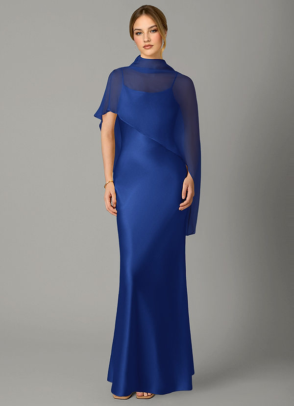 Royal Blue A-Line High Neck Stretch Satin Dress