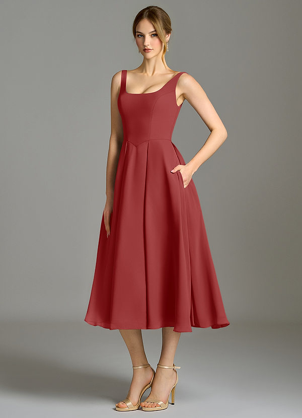 Rust A-Line Sweetheart Neckline Chiffon Dress