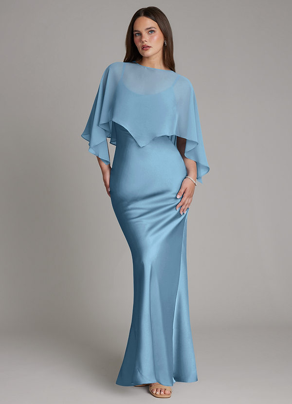 Steel Blue Mermaid Pleated Stretch Satin Dress