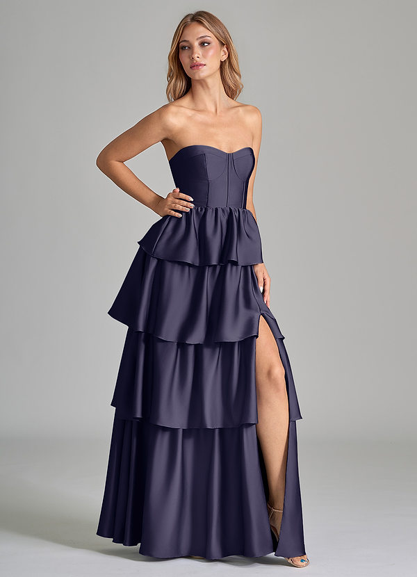 Stormy Mermaid Side Slit Stretch Satin Dress