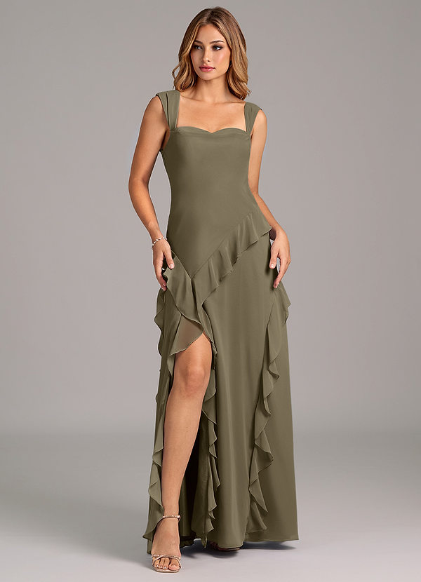 Willow Green A-Line Side Slit Chiffon Dress