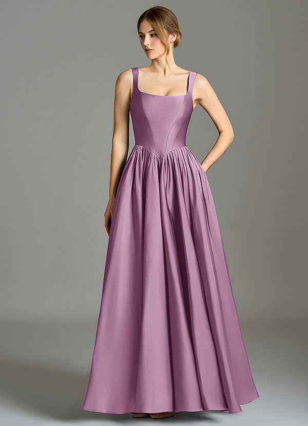 A-Line Stretch Satin Floor-Length Dress with Pockets