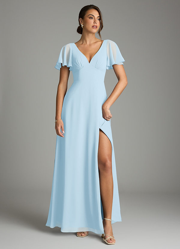 Sky Blue A-Line Flounce Sleeve Chiffon Dress