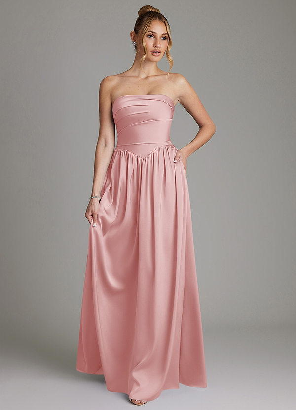 Powder Pink A-Line Strapless Stretch Satin Dress