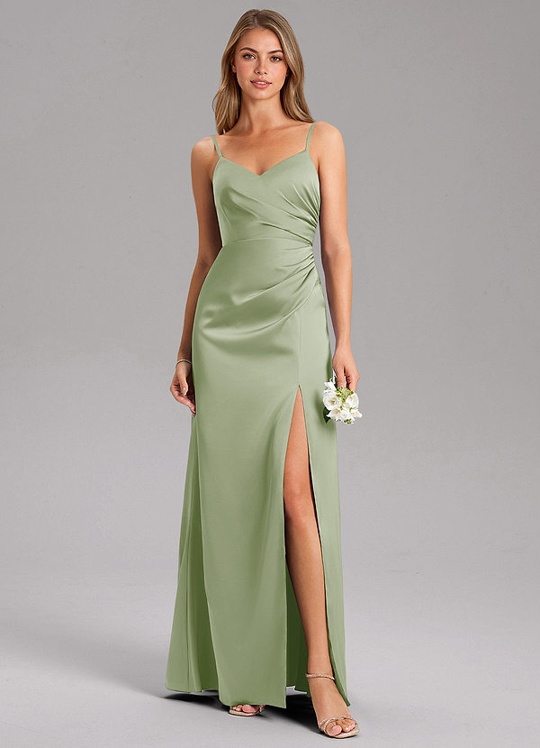 Dusty Sage A-Line Pleated Stretch Satin Dress