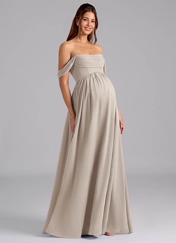 A-Line Off-The-Shouler Pleated Stretch Satin Floor-Length Dress