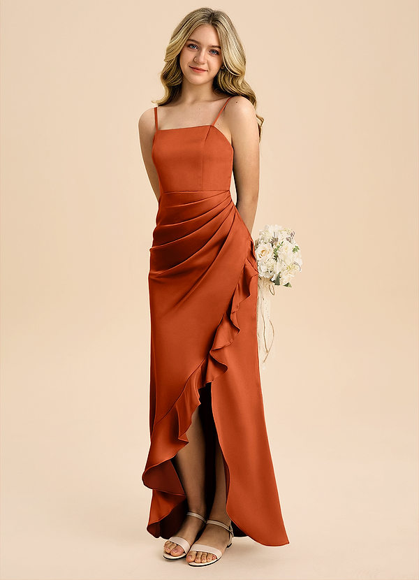 Burnt Orange A-Line Bow Chiffon Dress