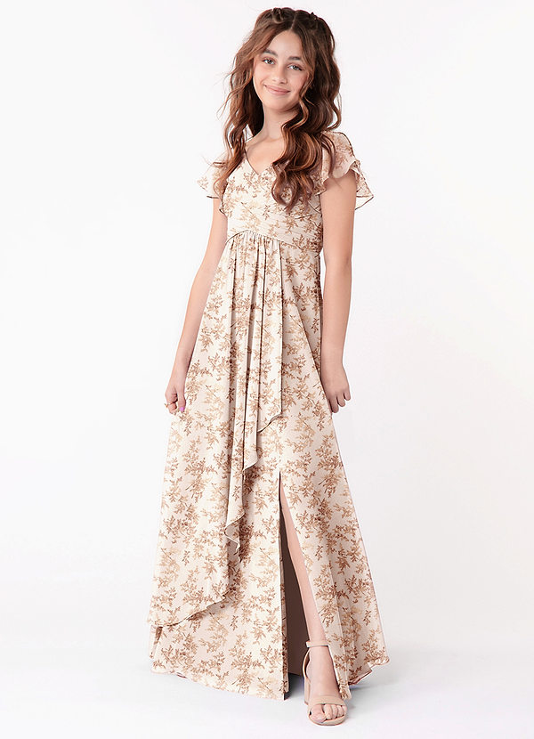 Pink Fern Floral A-Line Ruched Chiffon Dress