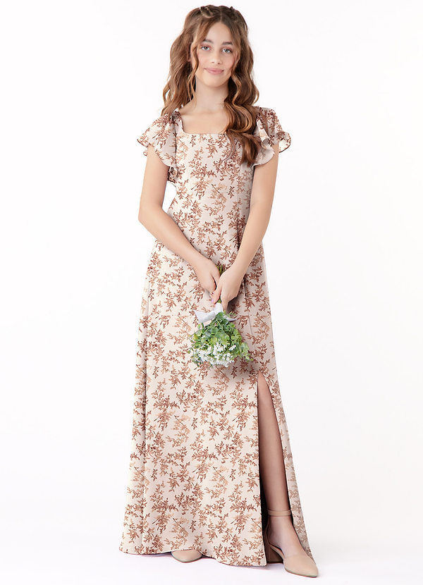 Pink Fern Floral A-Line Bow Chiffon Dress