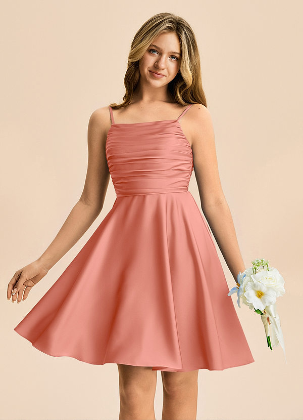 Salmon Pink A-Line Pleated Stretch Satin Dress