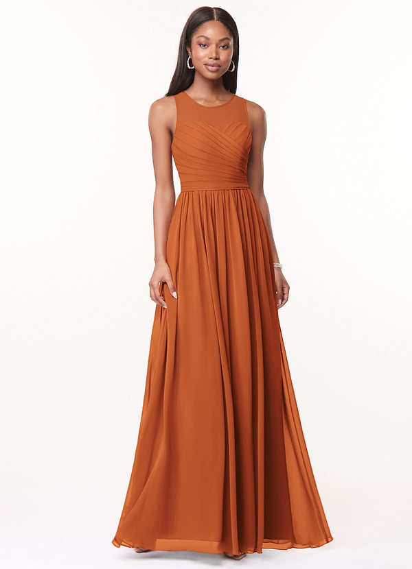 Merlot A-Line Scoop Pleated Chiffon Dress