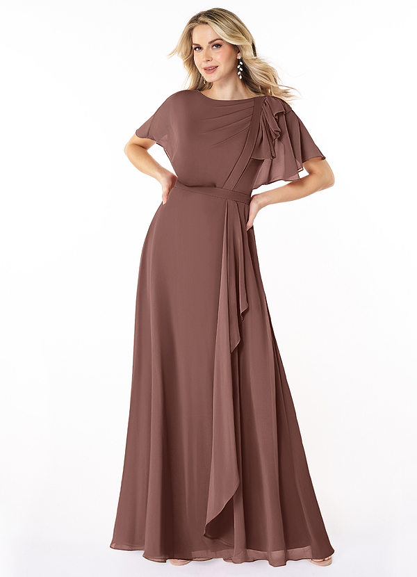 A-Line Ruffled Chiffon Floor-Length Dress