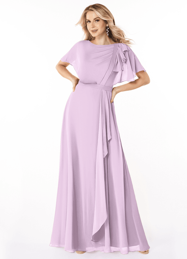 A-Line Ruffled Chiffon Floor-Length Dress