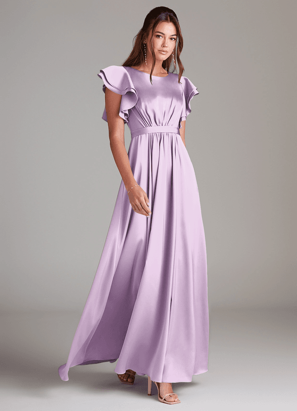 A-Line Ruched Stretch Satin Floor-Length Dress