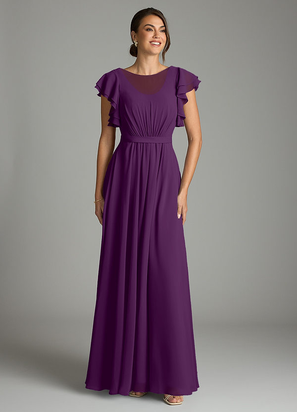 A-Line Ruffled Chiffon Floor-Length Dress