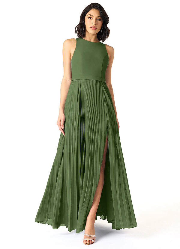 Dusty Sage A-Line Scoop Pleated Chiffon Dress