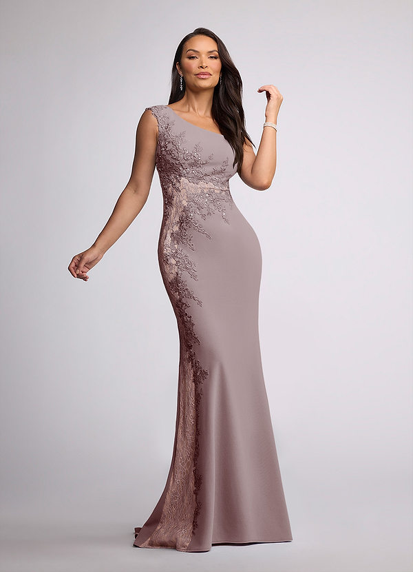 Dusty Blue Mermaid Pleated Stretch Crepe Dress