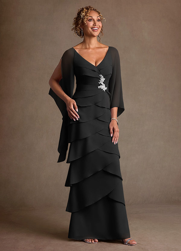 Black A-Line Lace Chiffon Dress