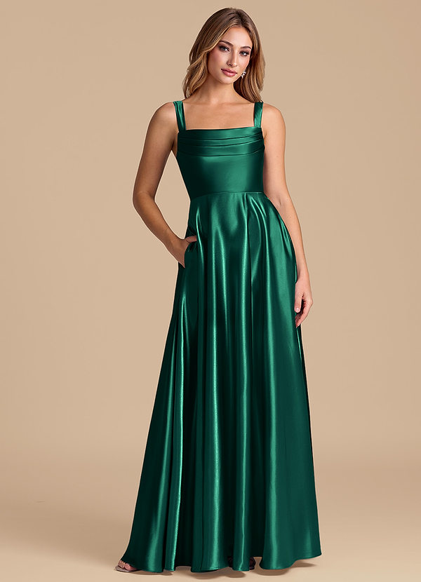 Emerald A-Line One Shoulder Metallic Satin Dress