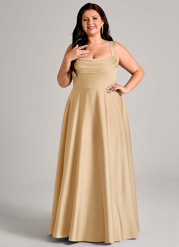 264 Items Gold A-Line Ruched Stretch Satin Dress