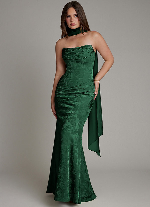 Forrest Green Jacquard Sheath Strapless Jacquard Dress