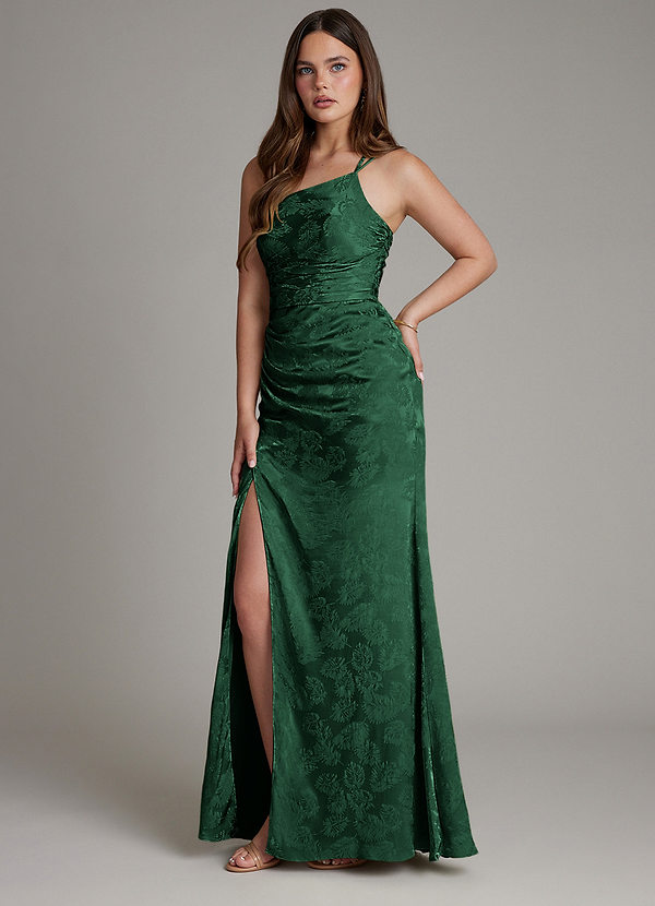 Forrest Green Jacquard Sheath One Shoulder Floral Jacquard Dress