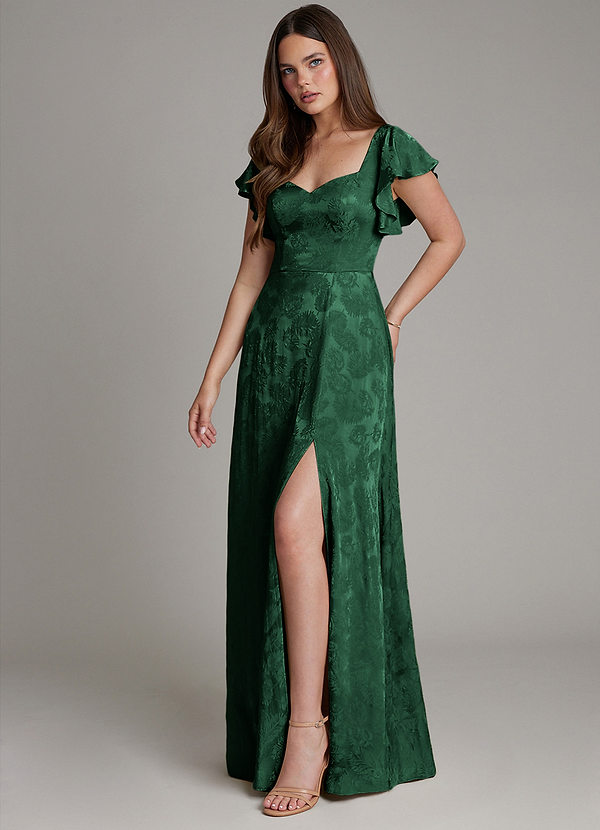Forrest Green Jacquard A-Line Ruched Jacquard Dress