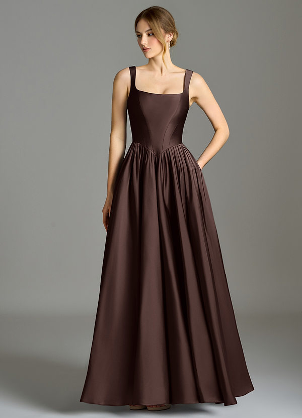 A-Line Stretch Satin Floor-Length Dress with Pockets