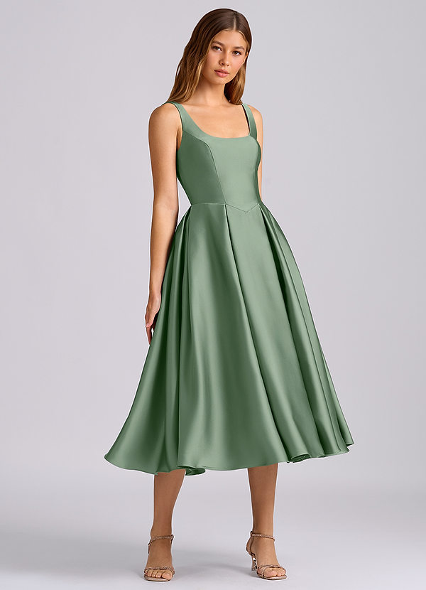 Matcha A-Line Pleated Stretch Satin Dress