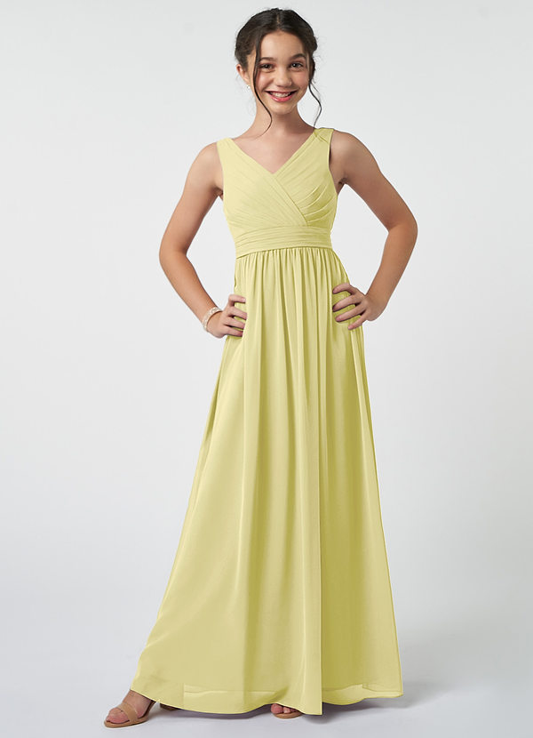 Lemon Sorbet A-Line Pleated Chiffon Dress