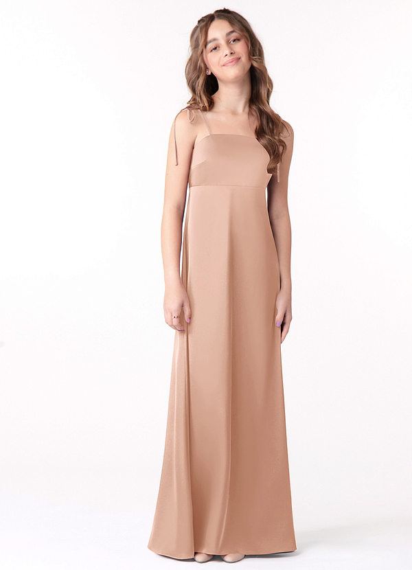 Rose Gold A-Line with Belt Stretch Satin Dress