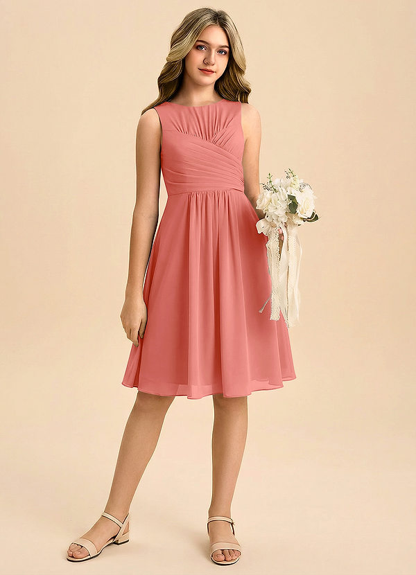 Salmon Pink A-Line Pleated Stretch Satin Dress