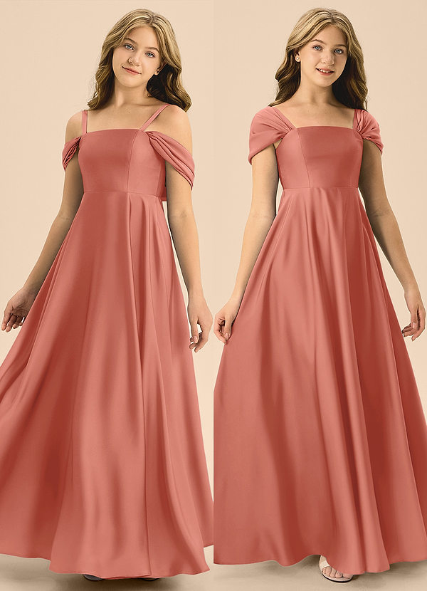 Salmon Pink A-Line Off the Shoulder Stretch Satin Dress