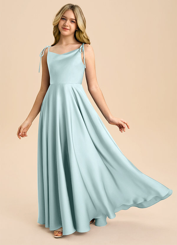 Sea Glass A-Line Side Slit Stretch Satin Dress